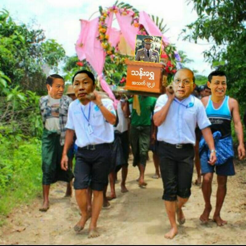 သမၼတႀကီးဦးသိန္းစိန္ရဲ႕ မ်က္ႏွာကို ကိုယ္လံုးတီးကေလးငယ္ရဲ႕ပံုမွာ တပ္ေပးတယ္။ အျခားမေလွ်ာ္ကန္တဲ့ပံုေတြ ဖန္တီးၾကတယ္။ နည္းတူစြာပဲ ရိုင္းျပစြာ မ်ိဳးစံုသံုးႏႈန္းေခၚေ၀ၚၾကတယ္။