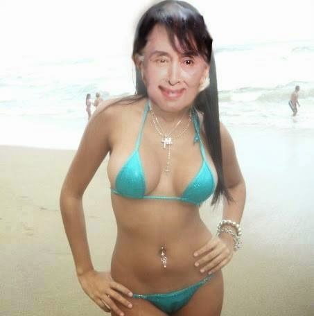 ေဒၚေအာင္ဆန္းစုၾကည္ရဲ႕ မ်က္ႏွာကို Bikini ၀တ္ကိုယ္ထည္နဲ႔တြဲေပးတယ္။ အျခား လြန္က်ဴးစြာေသာ Sexy ရိုင္းရိုင္းပံုေတြမွာ ေခါင္းေျပာင္းတပ္ေပးတယ္။ ဟိုမိန္းမႀကီးတို႔၊ ဘာမႀကီး၊ ညာမႀကီးတို႔ ရုန္႕ရင္းစြာ သံုးတယ္။